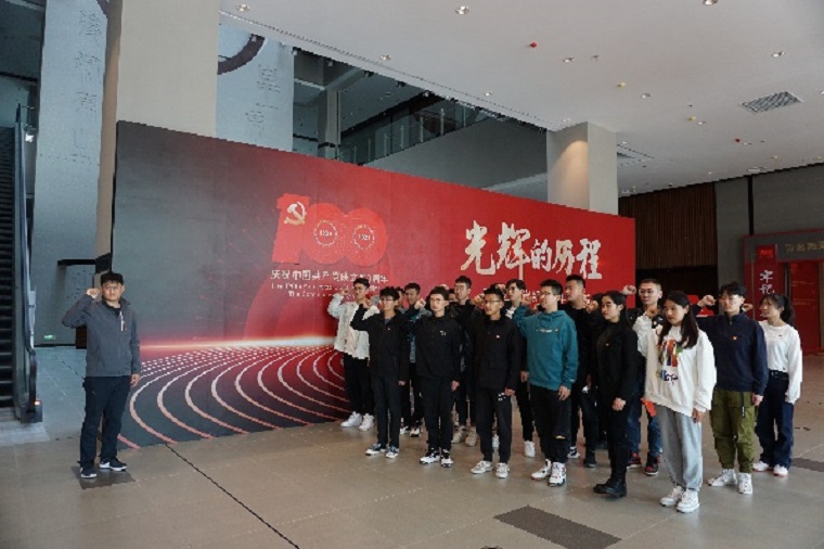 参观完毕,学生党支部书记刘树龙带领全体学生党员重温了入党誓词。