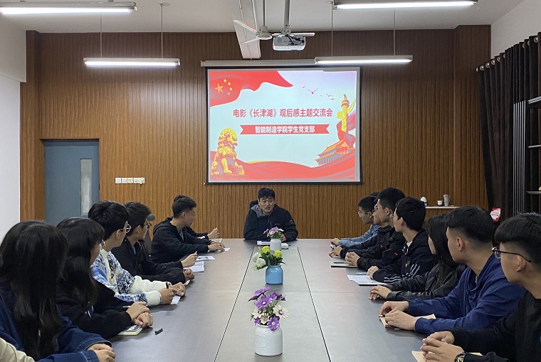 为纪念中国人民志愿军抗美援朝出国作战71周年,推进党史学习教育走深走实,10月25日,智能制造学院党总支学生党支部在知行楼301党员活动室开展红色电影《长津湖》观后感主题交流会,进一步激发广大党员的爱国热情,贯彻落实爱国主义教育,引导学院广大师生党员发扬抗美援朝精神,传承红色基因,赓续家国情怀,激发争先创优热情,向伟大的抗美援朝英雄致敬。学生党支部书记刘树龙及全体学生党员参加交流会。