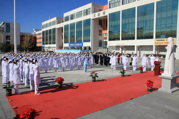 典礼最后,护理与健康学院学生代表在学院学术带头人李秀荣的带领下,在南丁格尔塑像前举行了庄严的宣誓仪式。