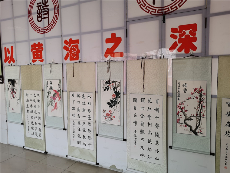 此次书画展内容为水墨画、诗词、名言名句,其字体分别有楷书、小篆、隶书、行书、草书等,可谓一场艺术的视觉盛宴。在一点一横、一撇一捺、一黑一白间包罗着自然万象,引人以无限遐想及深思。