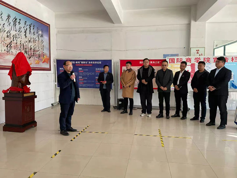 一尊孔子像,使原本平平无奇的知诚楼北厅凸显了些许宏伟,这便是2016级市场营销专业的优秀校友孙柯代表青岛盛世联城信息科技有限公司捐赠。孙柯在表示自己对黄海学院祝福与感谢的同时也说明了捐赠孔子像的原因:孔子像,已经不仅仅是一件艺术品,更是一面放在校园的镜子,表明校园致力于培养既有现代文明意识,又有传统文化素养的学生,为全校师生树立了立德修身、教书育人、勤而好学的表率,希望教师们以孔子石雕像的智慧和人格为尊崇标尺,不忘“恭、宽、信、敏、惠”的谋事治学原则,坚守“质朴的教育”理念进德修业,因材施教,争做“学高为师、行为示范”的表率。随后,孙在福院长与孙柯共同掀开孔子像的红绸,孙守强院长表示:儒家文化贯彻至今,愿同学们都要懂得先做人后做事的道理。