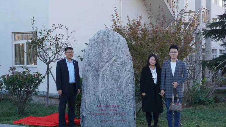 八德路,见证了黄海的成长。第二场泰山石捐赠仪式于八德路东北角举行,仪式开始,首先由俞志老师讲话,感谢于壮壮、李君俏夫妻对学校的捐赠。随后于壮壮发言,表达了对同学们独当一面的美好祝愿和期待以及对黄海母校未来发展的美好憧憬。孙在福院长和于壮壮、李君俏夫妻一起为泰山石揭幕,在红绸掀开的一瞬间现场响起了热烈的掌声。