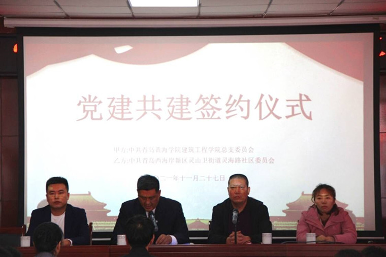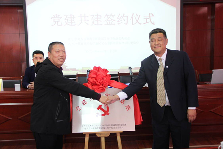 为全面贯彻党的十九大精神、加强新时代基层党支部建设、建立促进基层党建取得实效的协作平台,11月27日下午,威尼斯569vip游戏下载建筑工程学院党总支携手青岛西海岸新区灵山卫街道灵海路社区党委共同打造“共创共建”党支部。本次签约仪式在窝洛子社区科普馆举行,建筑工程学院党总支书记赵国光、组织委员衣淑丽,建筑工程学院学生支部书记赵铭涛、组织委员赵刚,灵海路社区党委副书记管明志、组织委员王凤等同志出席签约仪式。