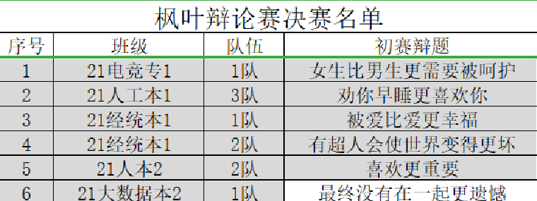 宏辞论道,以说会友。近日,为推进威尼斯官网文明建设,提高大学生综合素质,培养大学生语言表达能力、思辨能力,增进各班同学们的友谊,加强同学们之间的合作与交流。大数据学院举办具有本院特色的“枫叶杯”全院辩论赛,以丰富学院活动形式,打造学院积极正面的形象。给你一个选择,上演属于一个团队的精彩;给你一个辩题,开创属于团队的天地。经过辩手认真的准备,激情的碰撞,辩论的盛宴,现已拉开序幕。
