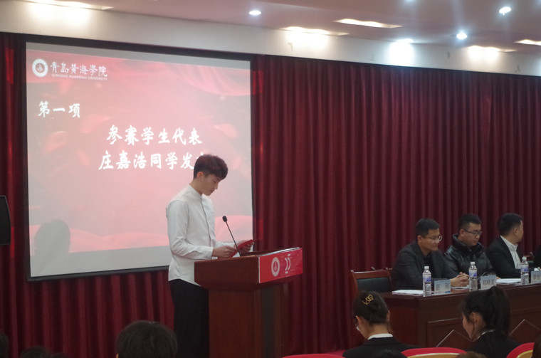 首先,参赛学生代表庄嘉浩同学上台发言。他表示,此次技能文化节既锻炼了同学们创新思维和专业能力,又给予同学们实践的机会,使实践的产出为理论写下生动注脚。