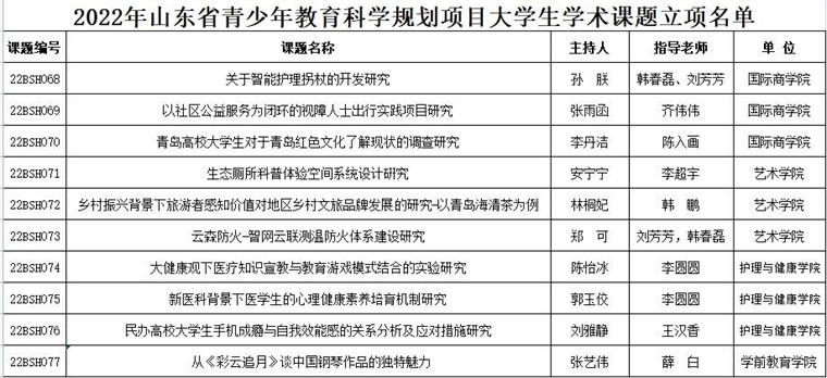 (三)山东省青少年教育科学规划课题大学生学术课题立项名单