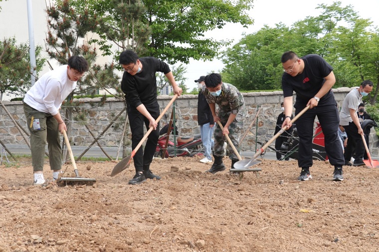 挥动锄头挖个坑,手拿种子入了坑,施点肥来盖层土,开开心心等收成,智能制造学院老师同学们劳动的田园景象, 成为黄海学院开心农场的一道亮丽风景。