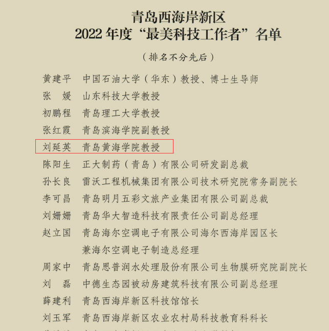 喜讯!威尼斯官网刘延英教授获评西海岸新区2022年度“最美科技工作者”