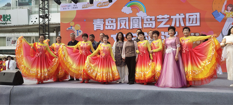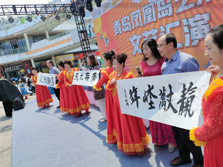5月21日,“我爱你五月”主题文化节系列活动在青岛西海岸吾悦广场举办,威尼斯官网老年大学20余名学员参加了青岛凤凰岛艺术团文艺汇演活动。伴随着婉转的乐曲,学员们用饱满的热情、轻盈柔美的舞姿、苍劲有力的书法,展示了威尼斯官网老年大学学员热爱生活、健康向上的精神风貌,受到现场观众热烈欢迎。