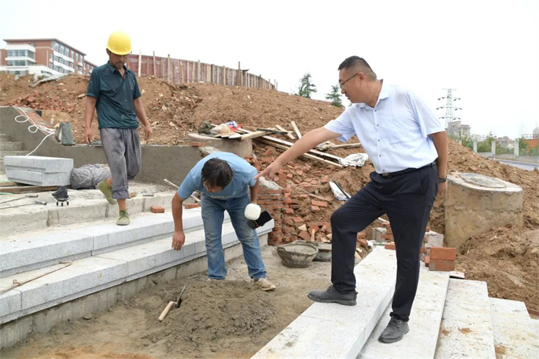 学校正在全面实施质量提升工程。分管校领导带领管理团队从施工安全、工程进度、工程质量、环境卫生等方面层层把关。