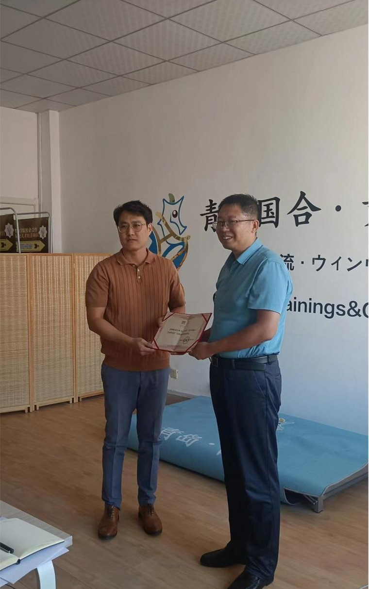 会议伊始,孙在福副院长对陈大伟教授一行的到访表示了热烈欢迎,详细介绍了学校的办学历史、日语专业的办学优势、校企合作项目的开展及运行等。孙院长强调,希望今后加强与青岛国合对外经济技术合作有限公司的交流与沟通,分享经验、相互学习,共同探索教育教学发展的新方法、新模式。随后,孙院长为陈大伟教授颁发了导师聘书,高度评价了教授在日语教学及国际交流领域所取得的成就。