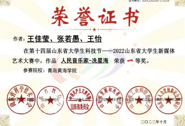 2022年11月,由山东省教育厅、山东省科学技术协会、共青团山东团委、山东省发展和改革委员会、山东省工业和信息化厅、山东省人力资源和社会保障厅联合主办的“第十四届山东省大学生科技节——山东省大学生新媒体艺术大赛”的作品评选活动已落下帷幕。学前教育学院教师王佳莹荣获优秀指导教师称号,指导学生报送作品《送你一朵东方茉莉(课件设计)》荣获学生组课程课件设计类作品一等奖,与学前教育学院教师张若愚、王怡合作设计课件荣获教师组课程课件设计类作品一等奖。
