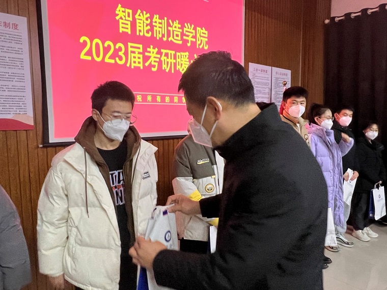 12月13日下午,智能制造学院院长刘纪新、院长助理周淑芳、齐海明在301会议室给2022考研学子送上暖心大礼包。2023届辅导员老师及考研学生代表参加了活动。