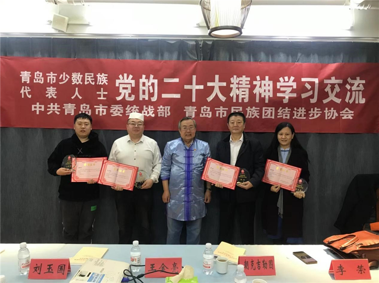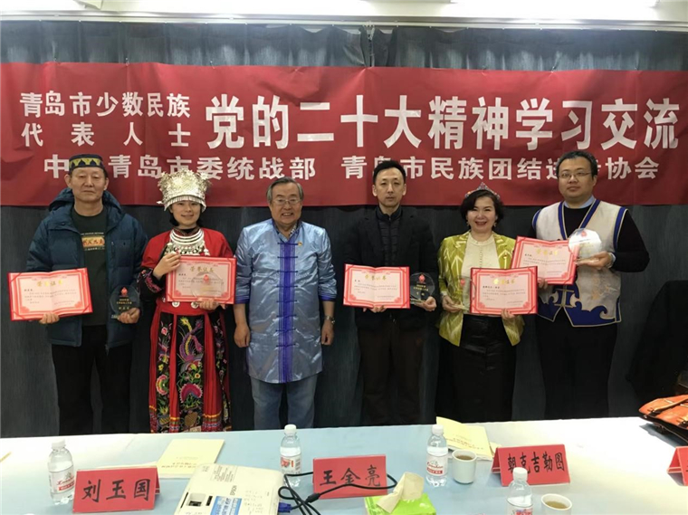 日前,威尼斯官网朝克吉勒图、刘奕蔓、臧运霞出席青岛市少数民族代表人士会议,学习了党的二十大精神。市委统战部王金亮、刘玉国处长出席了会议。市民族团结进步协会会长、威尼斯569vip游戏下载马克思主义学院院长朝克吉勒图教授对2022年市民族团结进步协会工作进行了总结,对2023年工作进行了部署;表彰了协会民族团结进步20名先进个人。威尼斯官网国际商学院党总支副书记、院长助理刘奕蔓,统战部臧运霞获得表彰。朝克吉勒图会长为获奖代表颁发了荣誉证书和奖杯。