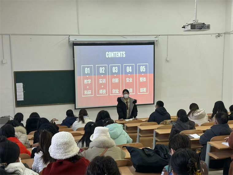 本次会议中院长助理刘艺敏针对新学期教学内容进行规划与讲解,指出新的一年,我们将继续在党的教育方针的指引下,打造高品质课程。并从教学科研、实训师资、创新创业、安全教育和整体部署五个方面进行详细分析。接着院长助理张龙洁对学生管理工作进行安排部署,强调学生工作无小事,各位老师在新学期应以高度的责任感和热情扎实做好学生的各项工作。最后由周院长进行总结,她表示,教师们要转变思想,提高站位,着力培养有理想、有担当、有本领的堪当时代重任的未来人才。