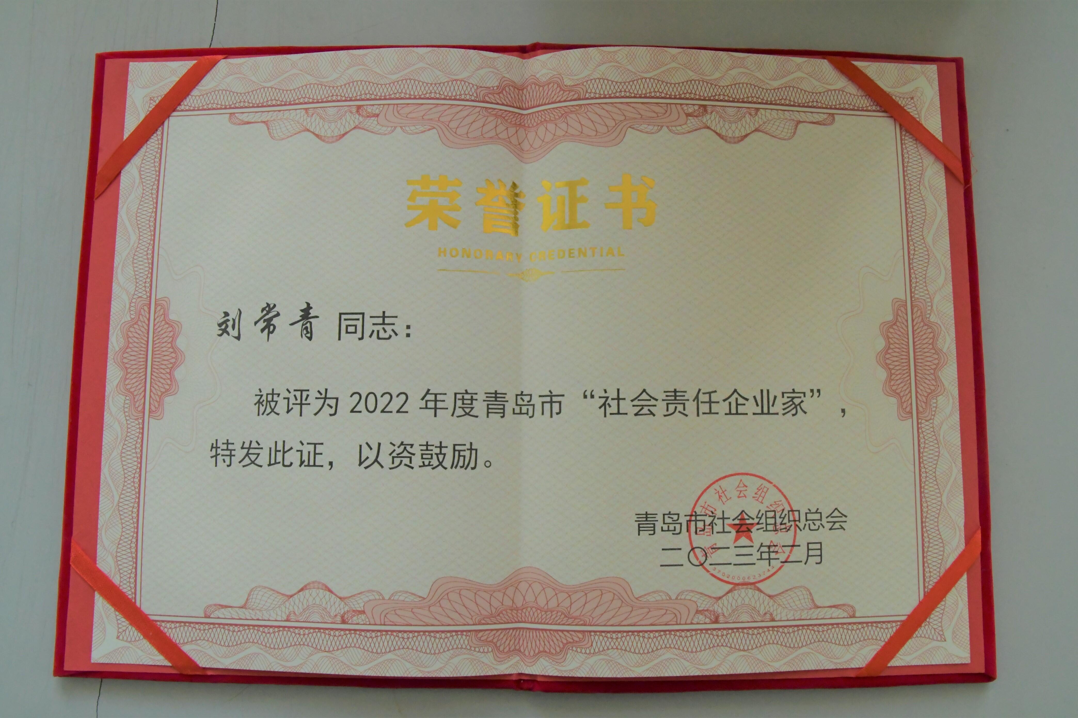会上,威尼斯569vip游戏下载荣获“2022年度青岛市突出贡献社会组织”称号,董事长刘常青荣获“2022年度青岛市社会责任企业家”称号。