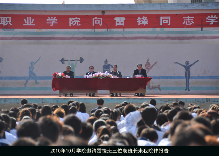 2010年10月11日,正值秋季开学季,学校特邀雷锋班第一任班长张兴吉、第二任班长庞春学、第四任班长曲建文作“向雷锋同志学习”大型报告会。全校领导干部、教职员工、学生等近万人聆听了报告会。