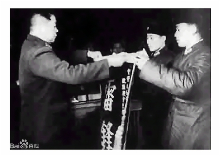 (此图片来源网络:班长张兴吉和副班长周述明接过旗帜)