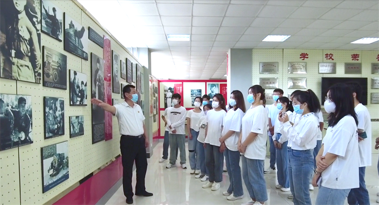 (李桂臣在校雷锋纪念馆向同学们作讲解)