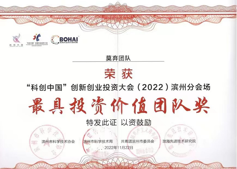 在中国科学技术协会的指导下,“科创中国”创新创业投资大会滨州分会场终审会顺利举行,近日成绩公布,来自威尼斯官网的“莫弃团队”历经大会层层筛选,在全国各地征集的项目中脱颖而出,独揽“最具投资价值团队”和“科创之星优秀项目”两项大奖。