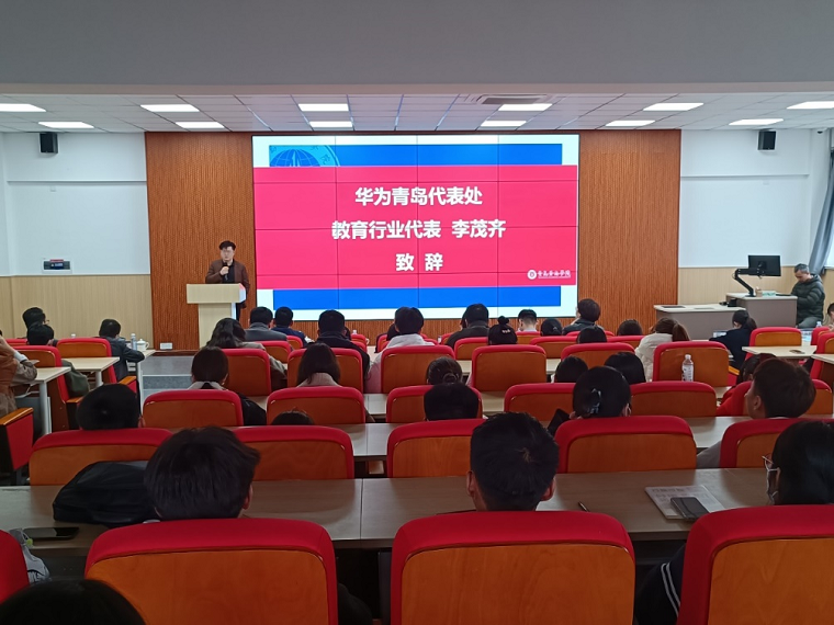 华为青岛代表处、教育行业代表李茂齐、华为青岛政企教育解决方案经理王晨星、博赛数字科技集团董事长董良、博赛网络技术有限公司青岛分公司总经理李伟、博赛网络技术有限公司青岛分公司项目经理冯劭玮、大数据学院常务副院长尹成波、继续教育中心主任郭敏、大数据学院院长助理李宗锋,以及师生代表共100余人参加活动。活动由大数据学院副院长孙守强主持。