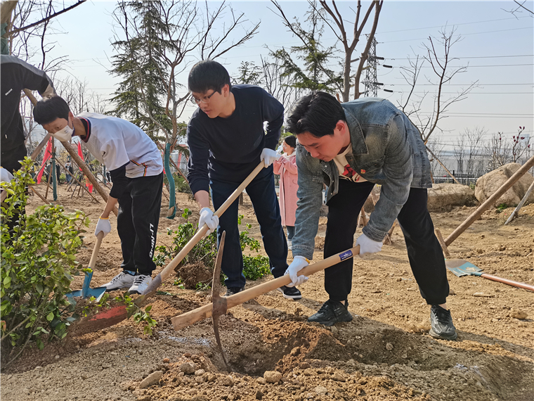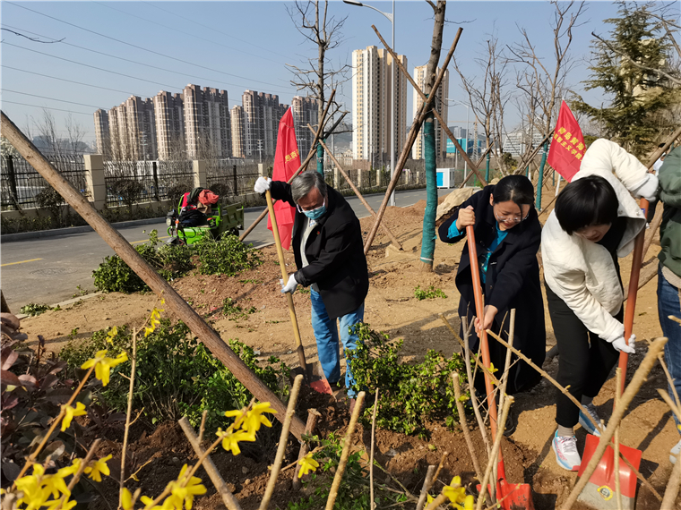 跟随着春天的脚步,又是一年植树季。传递文明“植”于心,播种绿色“树”未来。为贯彻落实习近平总书记关于生态优先、绿色发展的重要指示精神,进一步树立“绿水青山就是金山银山”的理念,努力打造人与自然和谐共生的环境育人和生态育人并重的校园。马克思主义学院与体育教学部党总支全体党员以及积极分子于3月28日上午在学校西区18号学生宿舍楼南边小广场开展“共植初心树 党员先锋行”义务植树主题党日活动。