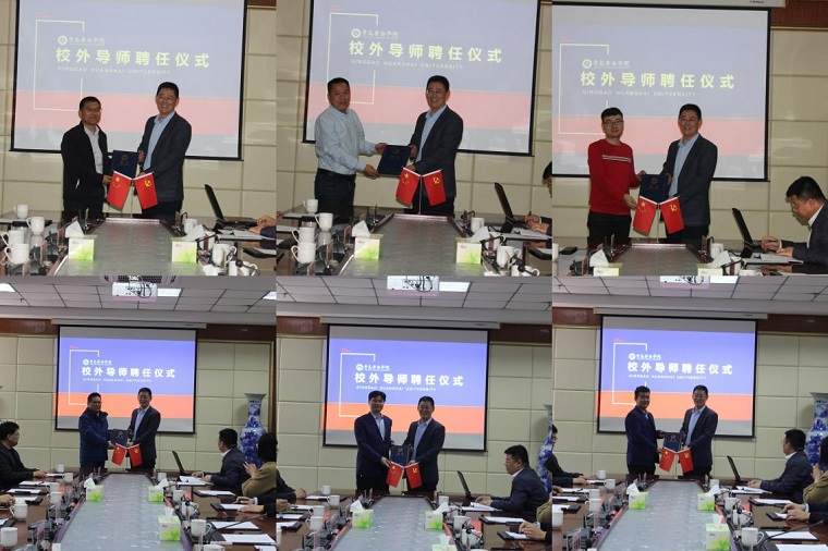 校外导师聘任仪式上,刘纪新分别给智能制造学院新聘任的校外导师颁发了证书并合影。