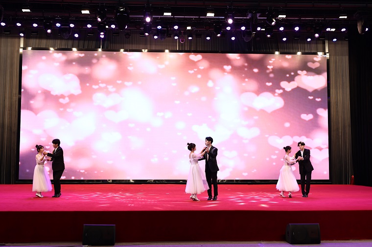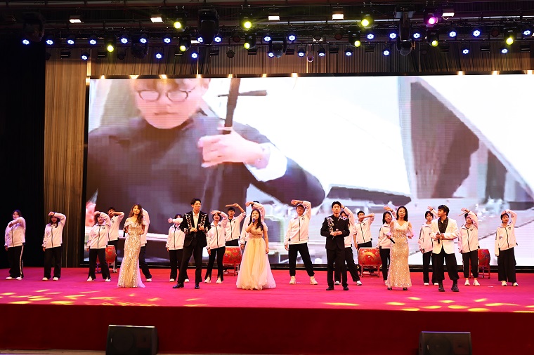 本次晚会分为五个篇章,第一个篇章“以青春之花,结奋斗之果”由建筑工程学院带来的鼓点歌曲《相亲相爱》拉开序幕;随后,国学社表演的民乐合奏《瑶族舞曲》将现场气氛带到了第一个高潮;由学前教育学院带来的影子舞《爱的华尔兹》展现了黄海学子优雅端庄的气质。