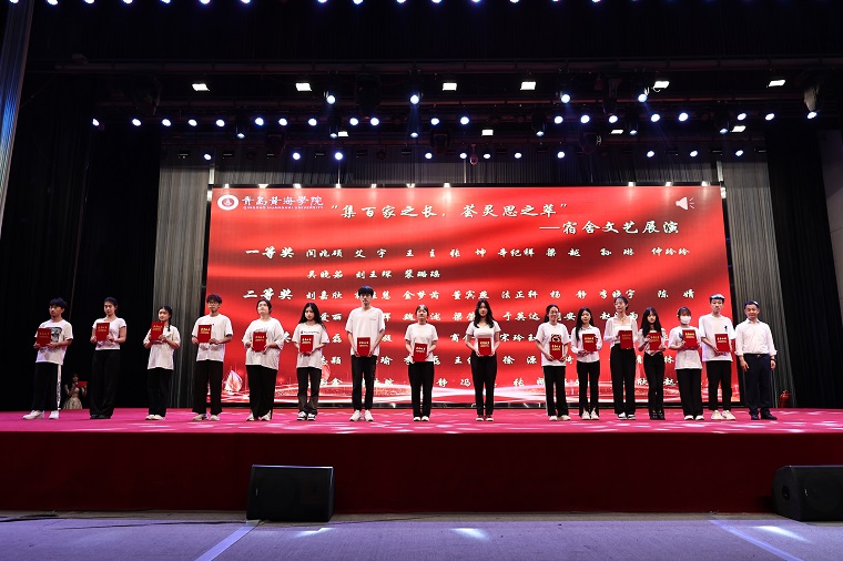 本轮表演结束后,大数据学院院长助理李宗峰、艺术学院院长助理杜超、经济管理学院院长助理刘政义、国际商学院院长助理刘奕蔓为在以下四项比赛中获奖的同学们颁奖,分别是:“集百家之长,荟灵思之萃”—宿舍文艺展演(15人)、“悠悠墨香,寓见美好”—宿舍征文活动 (15人)、“寓”有大爱,“宿”说精彩—校园微视频大赛 (15人)、“我以我手执新笔,我以我心绘我寝”—公寓设计大赛(15人)。