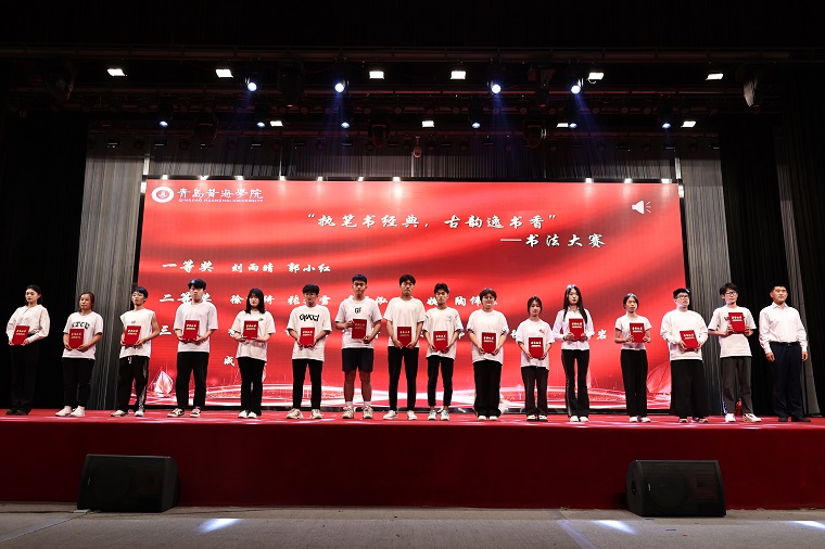 本轮表演结束后,智能制造学院院长助理齐海明、刘润强,学前教育学院院长助理张龙洁为在以下三项比赛中获奖的同学们颁奖,分别是:“堆金叠玉”—叠军被大赛(8人)、“执笔书经典,古韵逸书香”—书法大赛(15人)、“谈寝遇知音,论战在黄海”—黄海校园辩论赛(13人)。