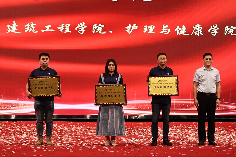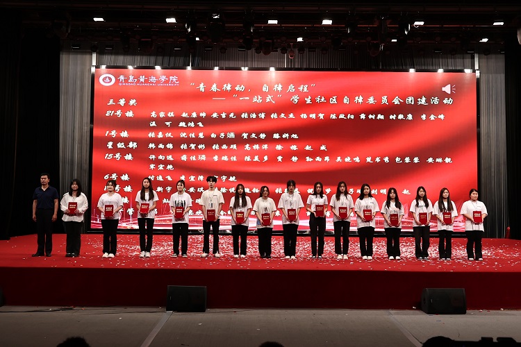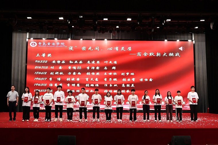 表演结束后,护理与健康学院院长助理孙延贺、建筑工程学院院长助理赵刚、艺术学院常务副院长孙兆忠为在以下三项各项目中获胜的个人和集体颁奖,分别是:“衣”笔点睛,怦然“新”动—文创PoLo衫大赛 (共15人)、“寝”密无间,心有灵犀—宿舍默契大挑战 (共15人)、“青春律动,自律启程”—自律委员会团建系列活动 (共15人)。
