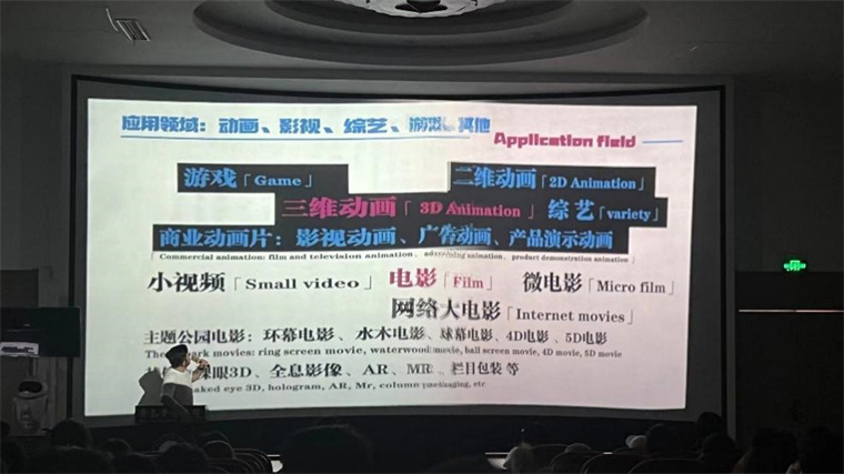 然后,主讲人崔明鹏向同学们介绍了小崔动画公司的基本情况,规划和未来。在介绍过程中,崔小飞先生着重介绍了公司关于“多元宇宙,融合共治”的规划及未来,讲述了打造技术基础,内容生态和社交生态的相关岗位和薪资情况,以动画制作,游戏制作软件为引,详细介绍了模型材质灯光等岗位的就业现状,鼓励同学们加入小崔影视动画,为同学们提供了明确的就业方向。