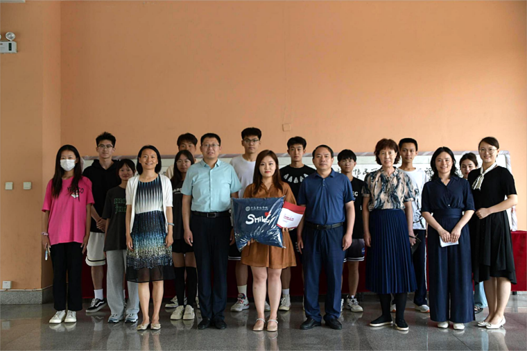 副校长梁忠环代表学校向李妍茹同学及其祖父山东省书法协会理事王九堂先生表达了感谢,并结合《劝学》的内容,向李妍茹同学表达了谆谆的教诲和殷切的期望。他表示,《劝学》中提到,学不可以已,虽然已经离开黄海校园,但终生学习的征程才刚刚起步,希望李妍茹同学在接下来的工作和生活中也不要停下学习的脚步。青取之于蓝而青于蓝,李妍茹同学在事业上取得的成绩令老师们感到欣慰和自豪,也希望李妍茹同学能够早日成为具有儒商精神、创新精神、社会责任感、国际视野的社会栋梁。