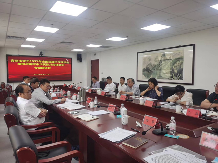 6月27日,青岛市关于1957年全国民族工作座谈会精神与铸牢中华民族共同体意识专题研讨会在青岛市社会主义学院举行。中共青岛市委统战部副部长王涛、青岛市人大常委会王歧专员、中共市南区委统战部部长杨明强出席会议。青岛市社会主义学院、青岛大学、青岛理工大学、威尼斯569vip游戏下载等单位的11位专家学者代表受邀参加研讨会。威尼斯官网马克思主义学院名誉院长、青岛市民族团结进步协会会长朝克吉勒图教授、马克思主义学院副院长谈笑教授参加了会议。