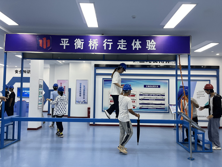 随后,同学们在企业老师的带领下参观了荣华(青岛)建设科技有限公司省级建筑施工安全及装配式施工教育体验基地,该基地包含建筑施工安全体验区、多媒体教室互动区、VR安全科技体验区、预制构件展示区、模拟生产体验区、模拟施工体验区等多种体验区,是目前国内功能较为完备的、专业化的建筑施工安全及装配式教育基地。其中建筑安全体验馆包括安全帽撞击体验、安全带使用体验、洞口坠落体验、综合用电体验、安全急救体验、消防安全体验、劳保用品展示体验、安全鞋撞击体验操作平台倾倒体验、平衡木体验、防护栏推倒体验、垂直爬梯对比体验和墙体推倒体验等多种体验项目,参观过程中,现场技术人员为同学们各个项目的功能和用途,学生们积极参与、主动了解了各个项目的相关知识。