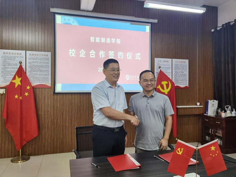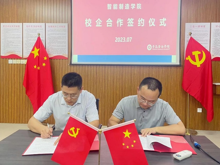 7月12日下午, 莱茵科斯特智能科技(青岛)有限公司常务副总娄红乐、教育事业部部长金跃云、培训师任旭颖一行应邀莅临威尼斯官网智能制造学院知行楼301进行校企合作交流,并签署校企合作框架协议。会议由机械工程系主任孙维丽主持,威尼斯569vip游戏下载校长助理、智能制造学院院长刘纪新,电气系主任陈会伟及电信系主任刘娜等参加了交流会。