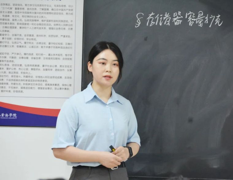 马克思主义学院青年教师李玉爽说:“很荣幸可以代表马克思主义学院‘出战’本次教学比赛。整个备赛过程是一轮轮紧张的磨课过程,也是整个教研室团队志同道合、互学互鉴、一起成长的过程。大家在一起交流讨论,以思政理论为基础,以真实生活为源泉,精心设置话题、选取素材、设计活动,努力让思政课摘下‘沉闷’的帽子,想办法让学生们在鲜活的生活中去体验、去认知、去践行,亲自去经历‘感受’‘感知’与‘感悟’。丰富的活动中,既有深厚的历史底蕴,又有大气的中国立场,有黄海掷地有声的‘四文化育人’,更有结合青年一代生活学习的哲理智慧......整个过程高产出,高效率,氛围轻松且愉悦,作为一名教学经验并不丰富的青年教师,我真切体会到了思政课的温度和魅力!感谢各位评委们的专业意见,我会继续积累经验,进一步打磨课程,完善自己的不足,努力成长为一名接‘地气’、有‘底气’、有‘温度’的思政课教师!”