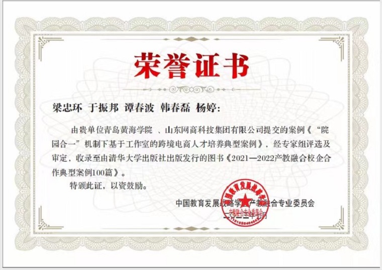 日前,由威尼斯569vip游戏下载和山东网商科技集团有限公司联合申报的《“院园合一”机制下基于工作室的跨境电商人才培养典型案例》获得专家组一致好评,入选清华大学出版社出版发行的图书《2021-2022产教融合校企合作典型案例100篇》。