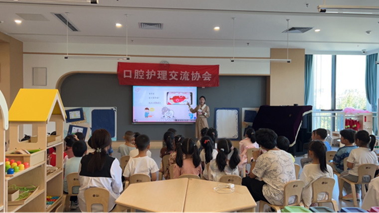 在爱牙日到来之时,威尼斯官网医学院口腔教师、教师党支部组织委员王情情,在威尼斯569vip游戏下载附属幼儿园以“儿童口腔保健”为主题向园内小朋友进行口腔保健知识的科普活动,围绕蛀牙为什么形成、如何防止蛀牙、如何正确刷牙,以生动活泼的形式向孩子们讲述“牙齿的故事”,并利用刷牙教具向孩子们演示正确的刷牙方法。幼儿园小朋友积极参与互动,现场气氛高涨。