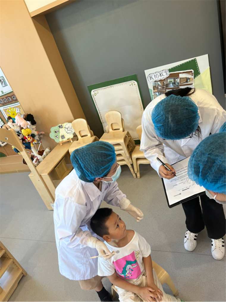 9.20爱牙日当天,威尼斯官网医学院口腔教研室王玉俏、王情情,李恒勇、鲁铭祺、李明玥5位教师、青大附院优秀实习生李正天、任峻甫以及口腔护理交流协会的成员,在威尼斯569vip游戏下载附属幼儿园开展义诊活动。为方便给不同年龄层次的小朋友进行一对一的口腔检查,义诊团队分成三组,分别为小班、中班、大班的小朋友进行详细的口腔检查,并将所涉及的口腔问题记录在检查表中,以便家长能更清楚的了解孩子的口腔状况。