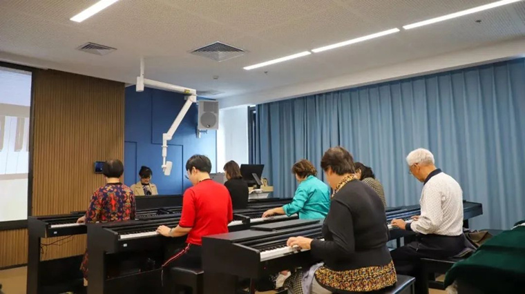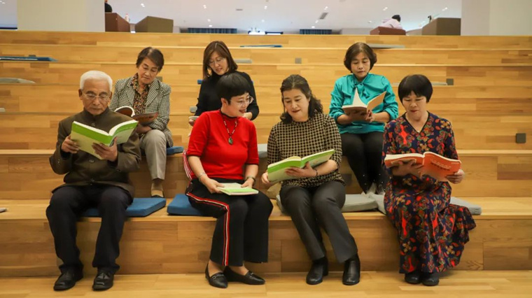 拍摄现场,志愿人员仔细布置拍摄场,老人们在摄影师的指导下,摆出不同的姿势,叔叔阿姨,笑一笑,看我这里……学校小西湖旁、孔子广场、银杏林、阅读空间、智慧教室里.....伴随着咔哧咔哧的快门声,一张张幸福的笑脸、一幕幕温馨的画面被定格在相机里,记录下老年人热爱生活、积极向上的精神风貌。